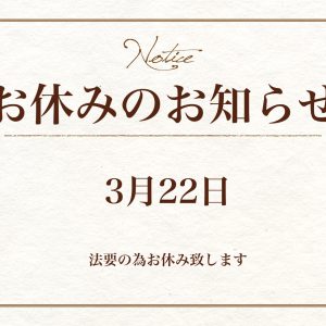 3/19 三連休初日ですね!雨は上がりましたがまだ寒いです😨 今日でまん防も終了、来週から通常営業に戻れます。でもまだマスクとはサヨナラ出来…
