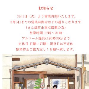 2/22週刊とん平通信 皆様には毎度ご贔屓頂きまして誠にありがとうございます。 蔓延防止延長で3月6日(予定)まで時短営業にな…