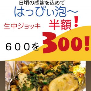 2019/11/14 毎週火曜水曜木曜 19時まではっぴぃ泡~ 生ビール中ジョッキを半額に‼ ☆今夜の刺身 千葉いわし刺身500円 …